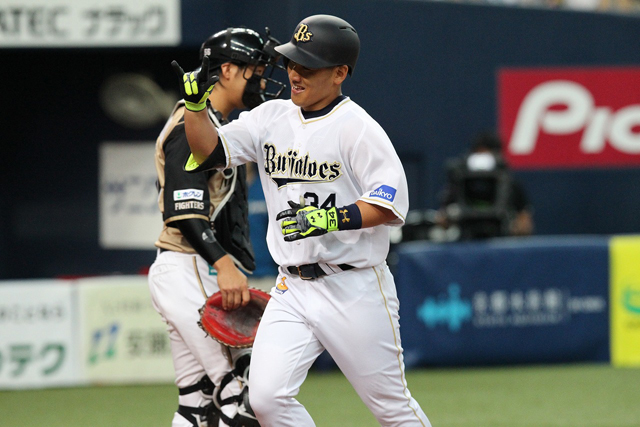 3番 吉田正 右本 ランナー2塁 カウント1-0から右中間へ先制2ランホームラン! オ2-0日 ![]() 2