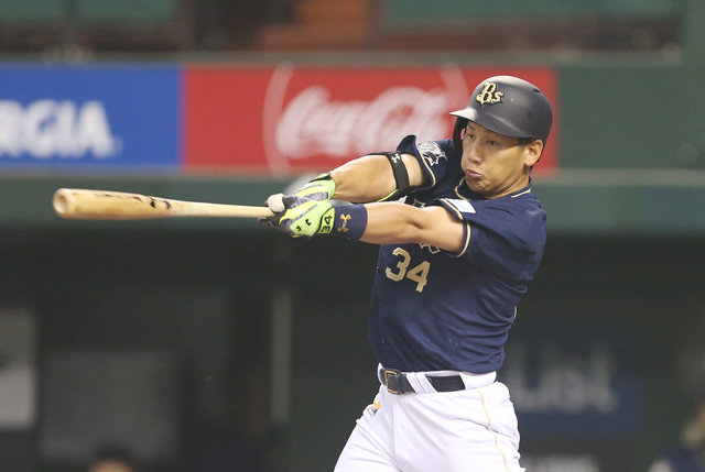 5番 中島 左安 外角低めのスライダーをレフトへ打ってヒット 1塁 |