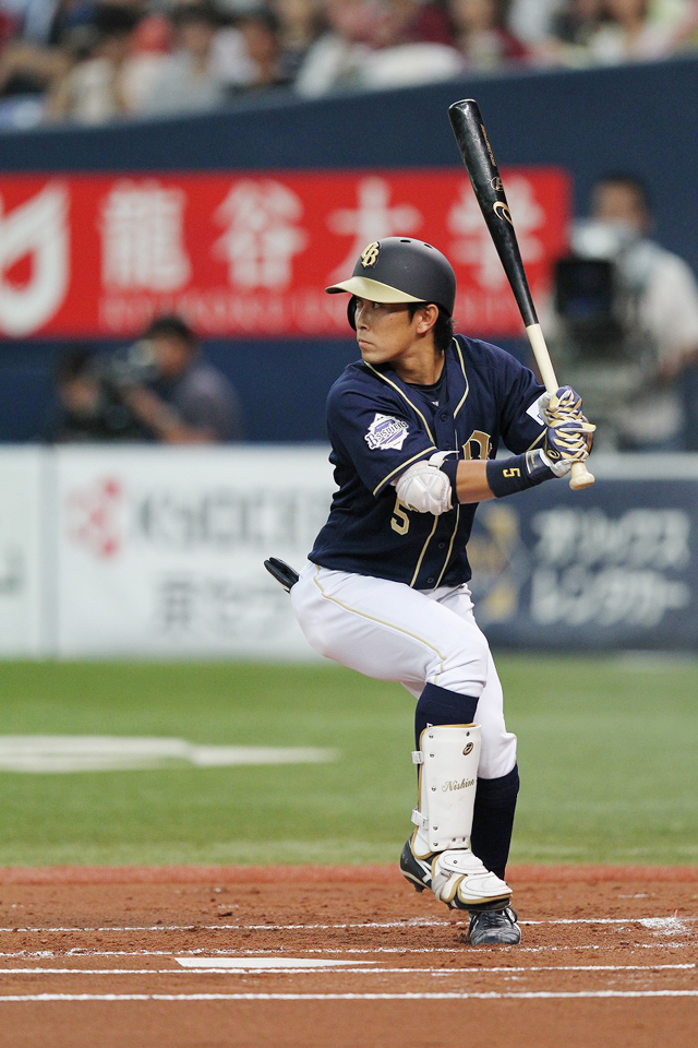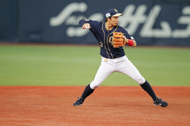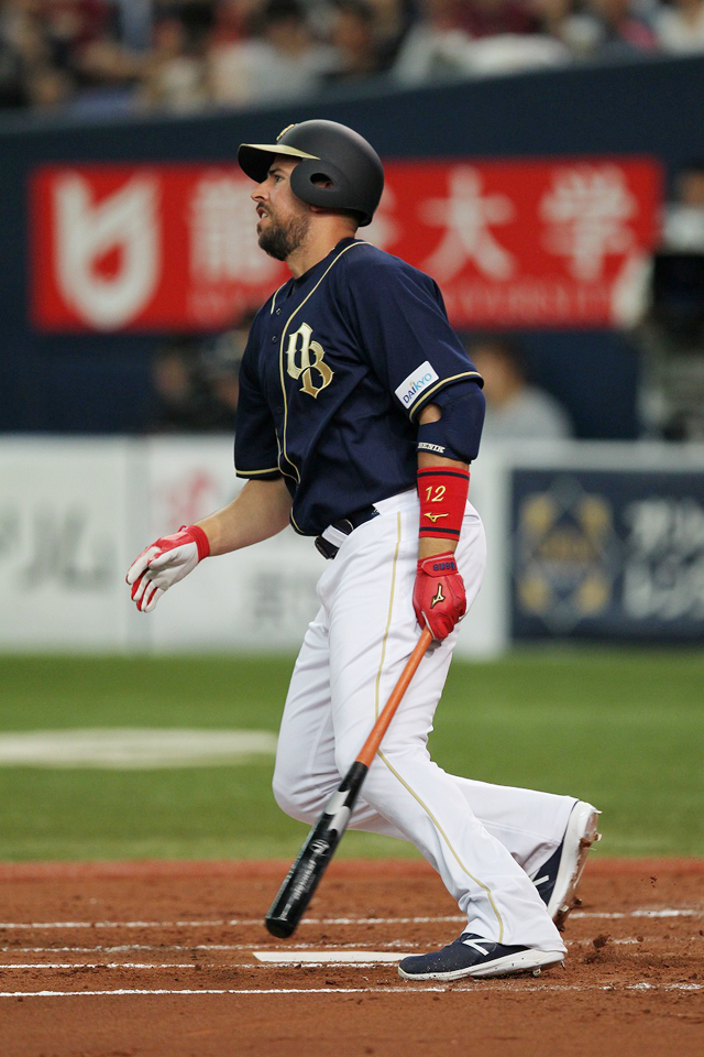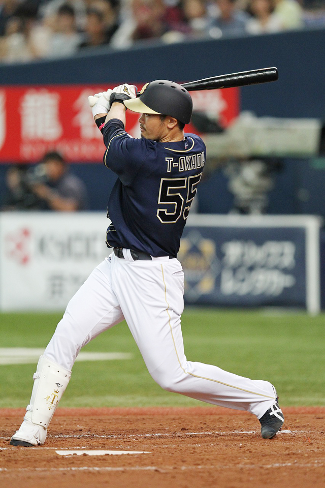 ライトへのヒットでチャンスを作ったT-岡田選手!