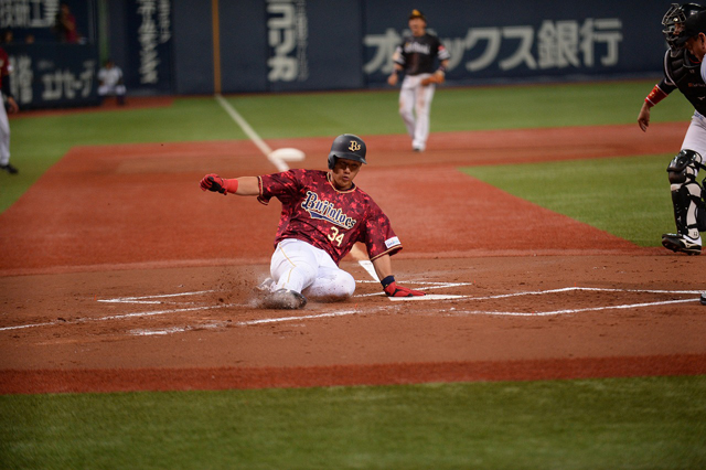 中島選手の犠飛で生還した吉田正選手!