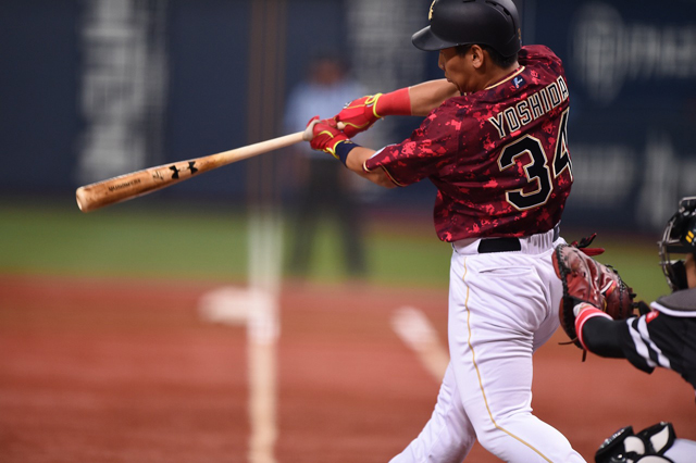 ライトへ2打席連続のヒットを放った吉田正選手!