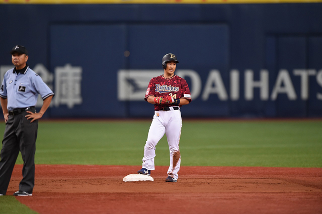 ライトフェンス直撃の2ベースヒットを放った吉田正選手!