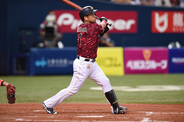 1番 今宮 中安 外角低めのカーブをセンターへ打ってヒット 1塁 |