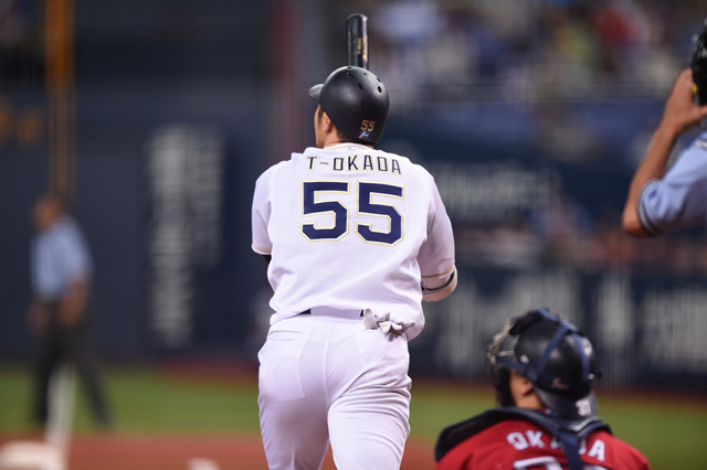 1番 T-岡田 二ゴロ 外角低めのフォークを打つもセカンドゴロ 2アウト |