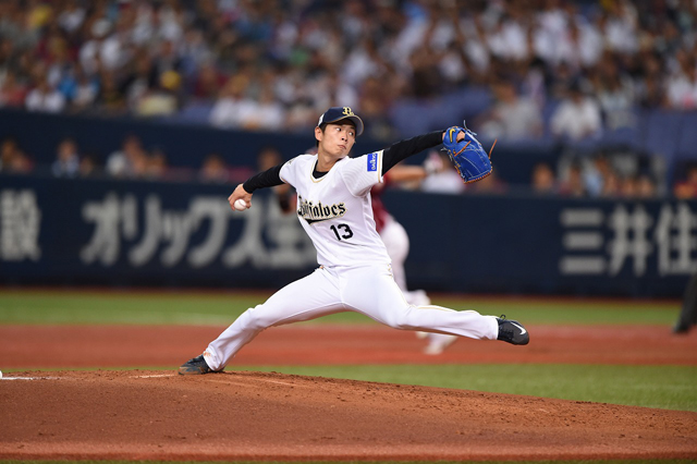 投手 則本 2番 吉田正 投ゴロ 外角低めのカーブを打つもピッチャーゴロ 1アウト |