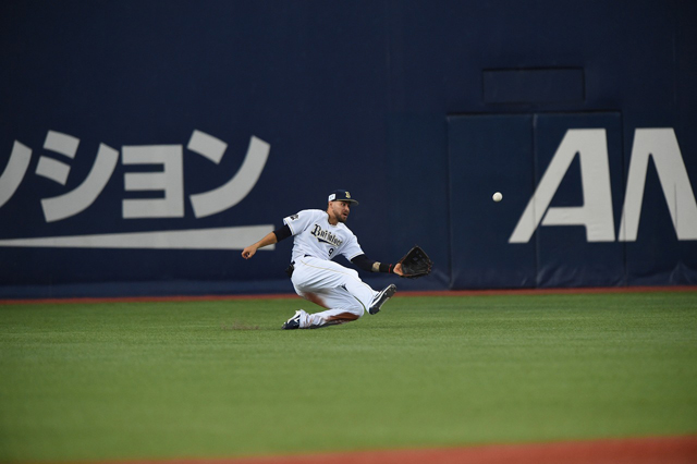 スライディングキャッチでタイムリーヒットになるのを防いだロメロ選手!