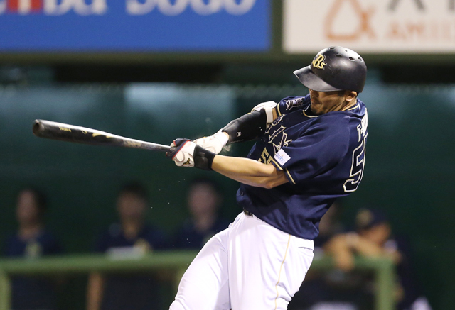 ライト前ヒットを放ったT-岡田選手!