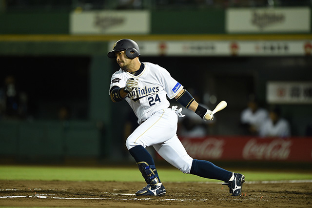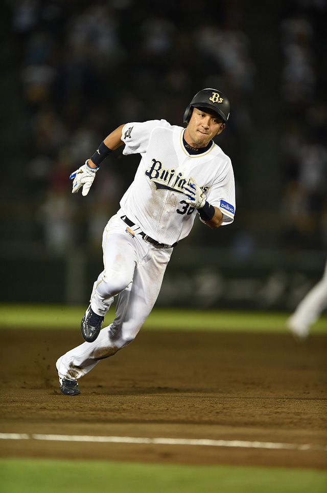 6番 T-岡田 中犠飛 ランナー1,3塁 カウント2-2からセンターへ犠牲フライ 1塁 オ2-5西 2アウト ![]() 2