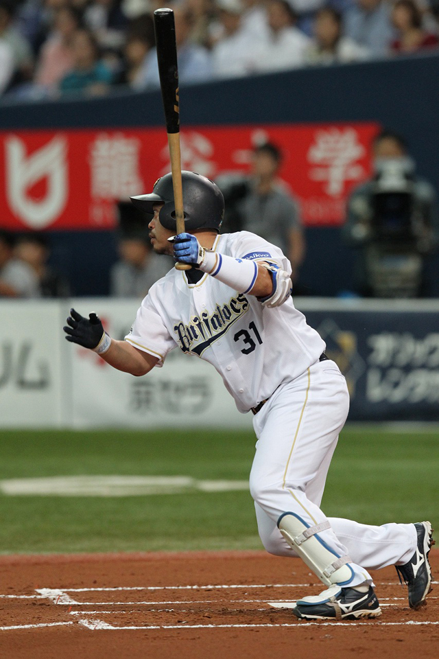 5番 レアード 左安 ランナー1,2塁 内角のストレートをレフトへタイムリーヒット! 1,2塁 オ2-4日 ![]() 2