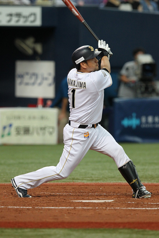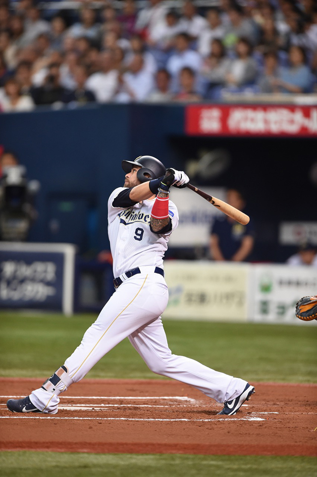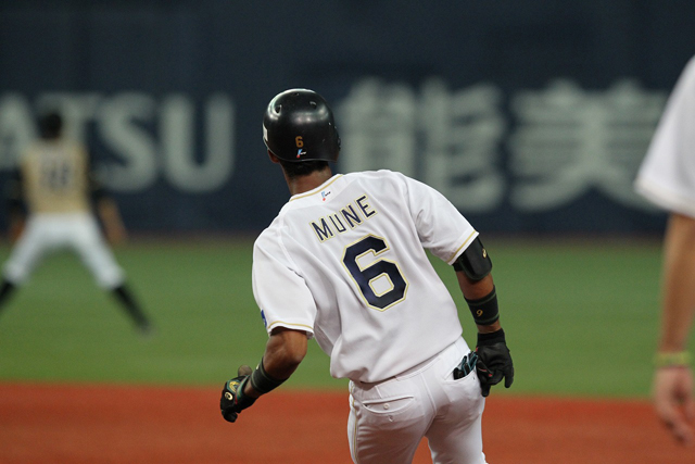 5番 レアード 右安 外角低めのスライダーをライトへ打ってヒット 1塁 |