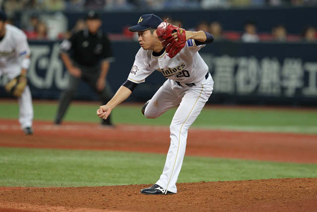 9番 石井一 空三振 外角高めのツーシームを空振り三振 1アウト |