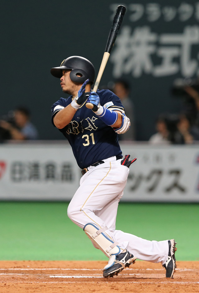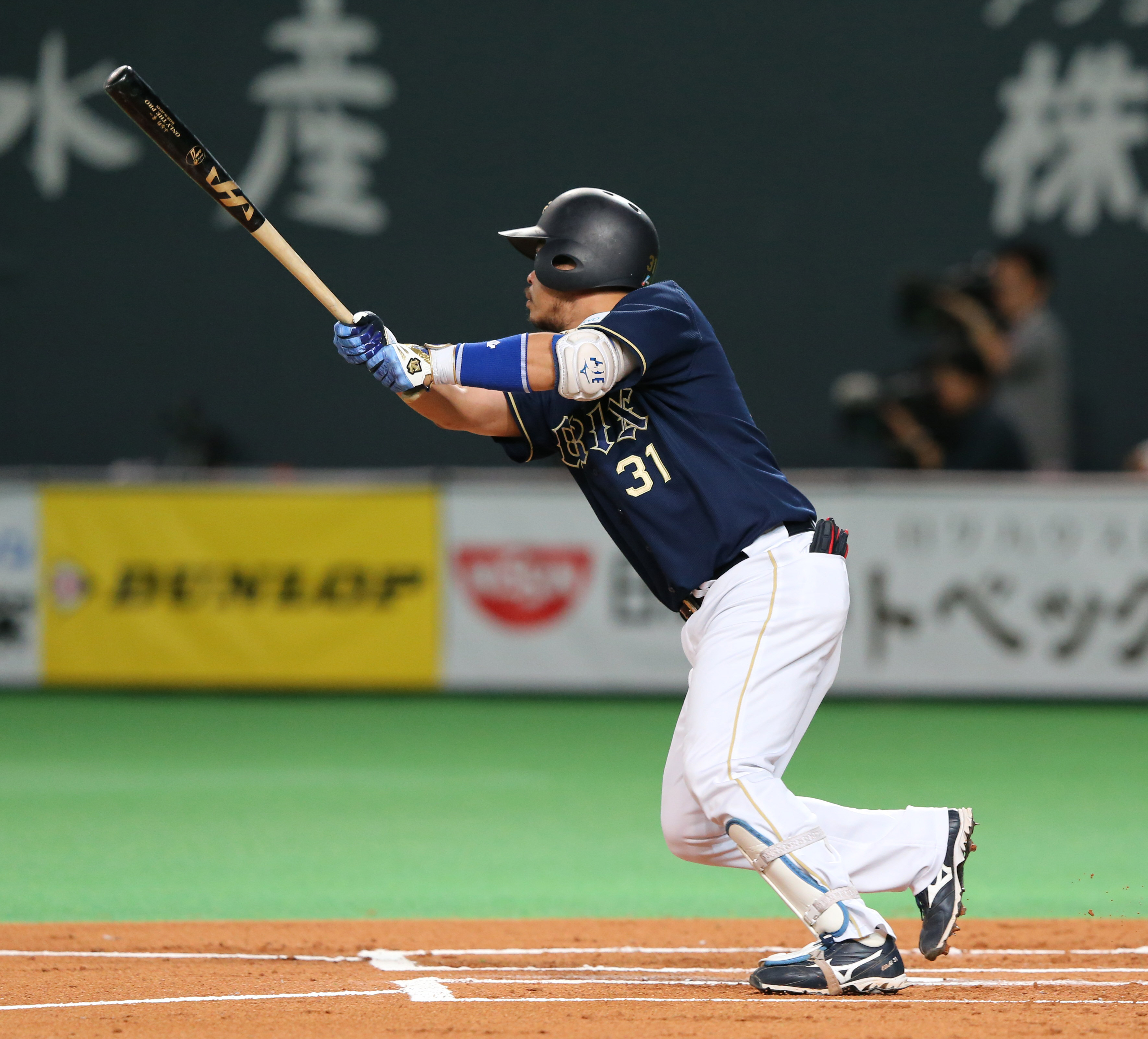 7番 石井一 右2 ランナー1,2塁 内角高めのフォークをライトへタイムリーツーベース 2,3塁 日4-1オ ![]() 4