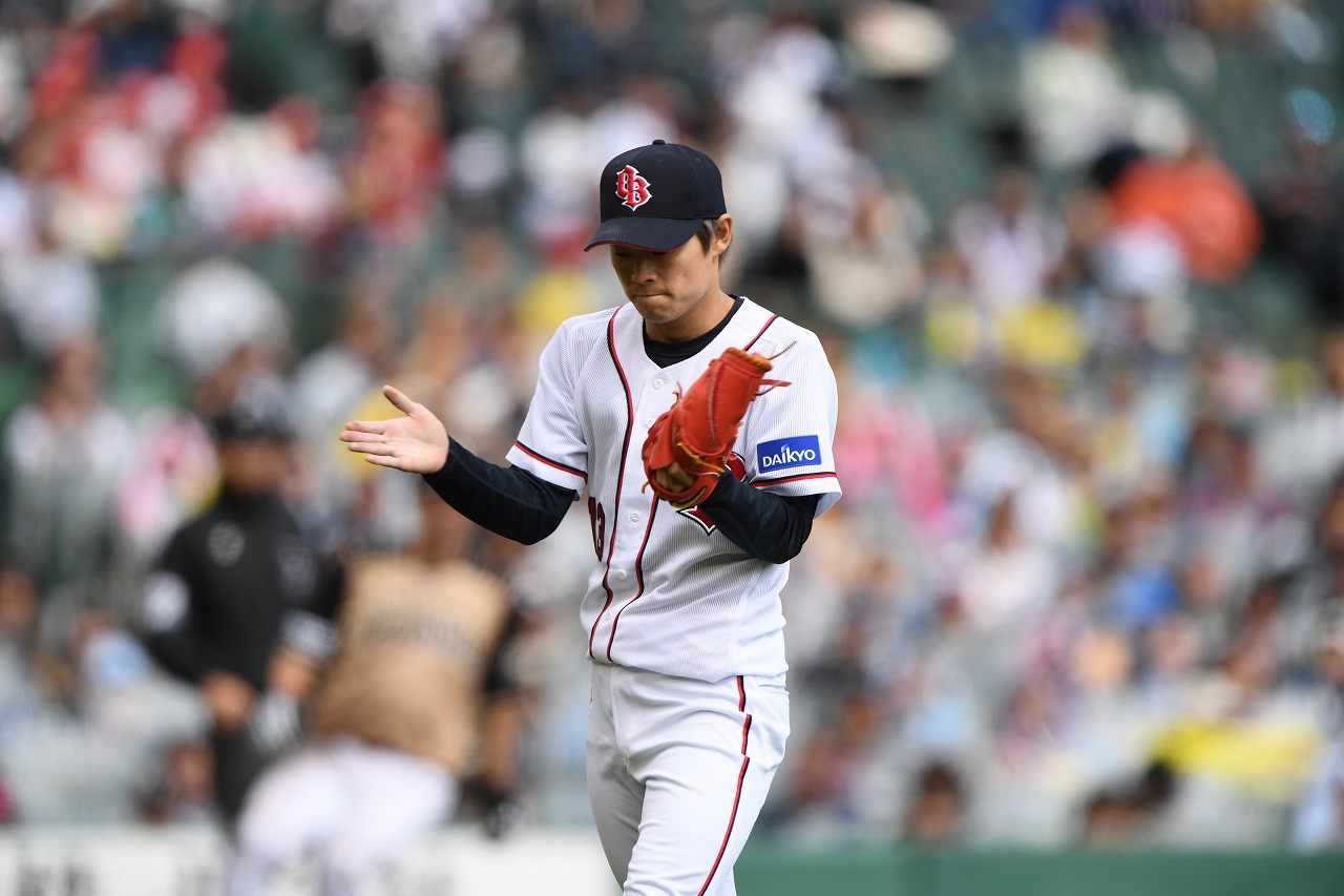 投手 山岡 8番 石井一 二ゴロ 内角高めのカットボールを打つもセカンドゴロ 1アウト |