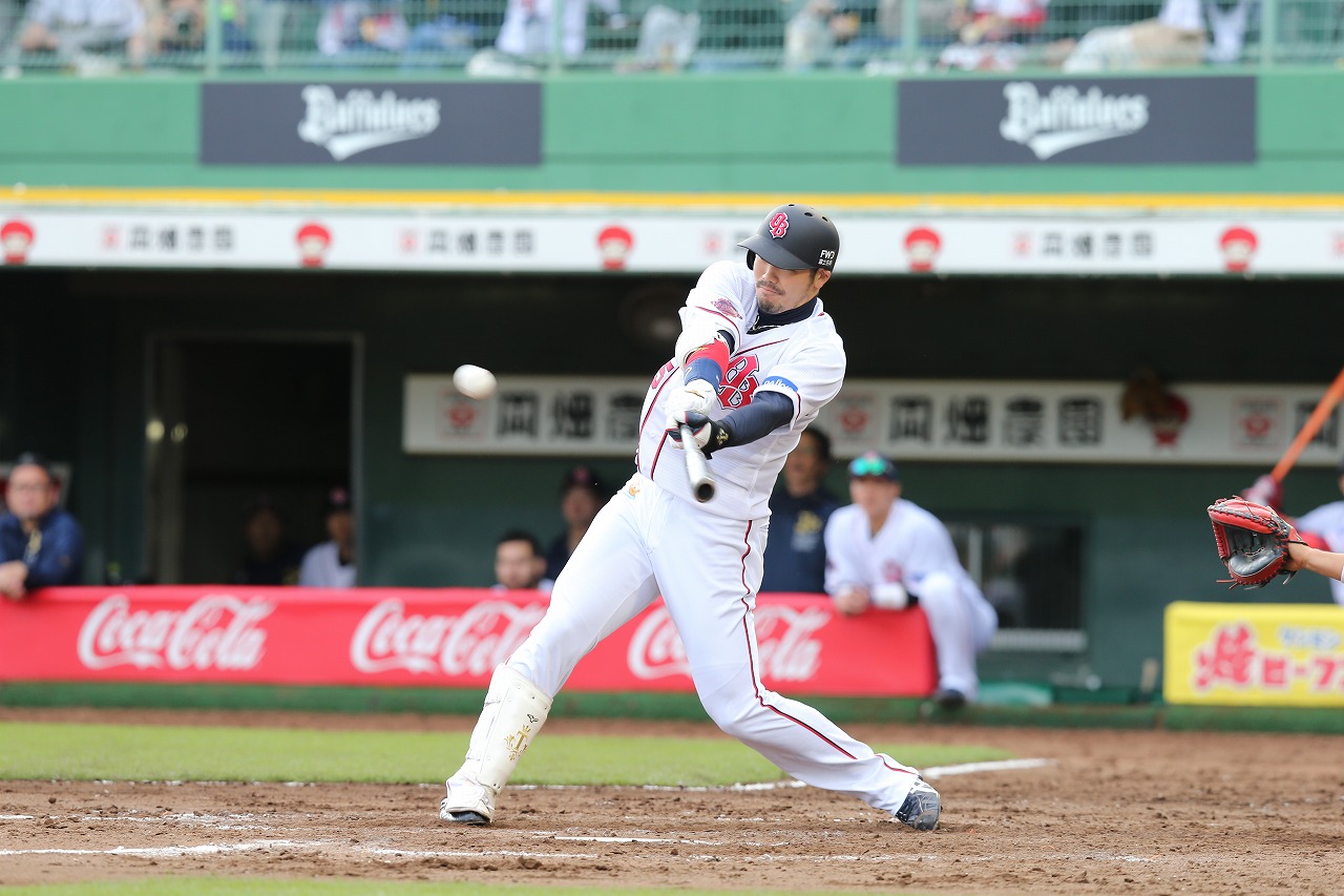 レフト線へタイムリー2ベースヒットをを放った小谷野選手!