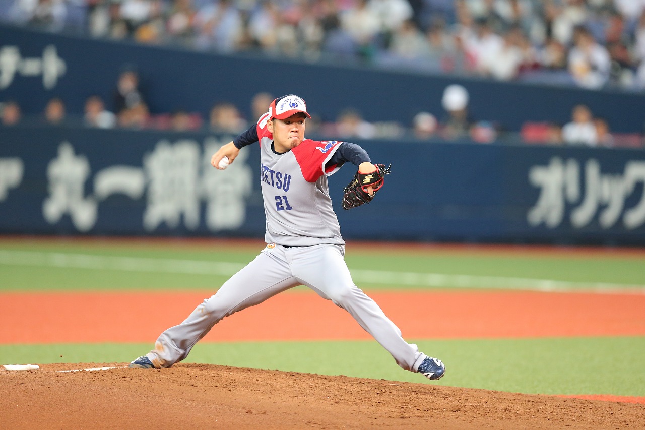 投手 東浜 6番 T-岡田 二ゴロ 高めのカーブを打つもセカンドゴロ 1アウト |