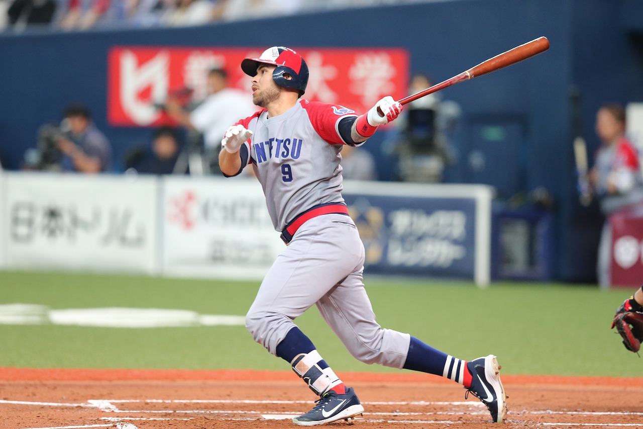 1死3塁のチャンスで先制の左中間タイムリー2ベースヒットを放ったロメロ選手!