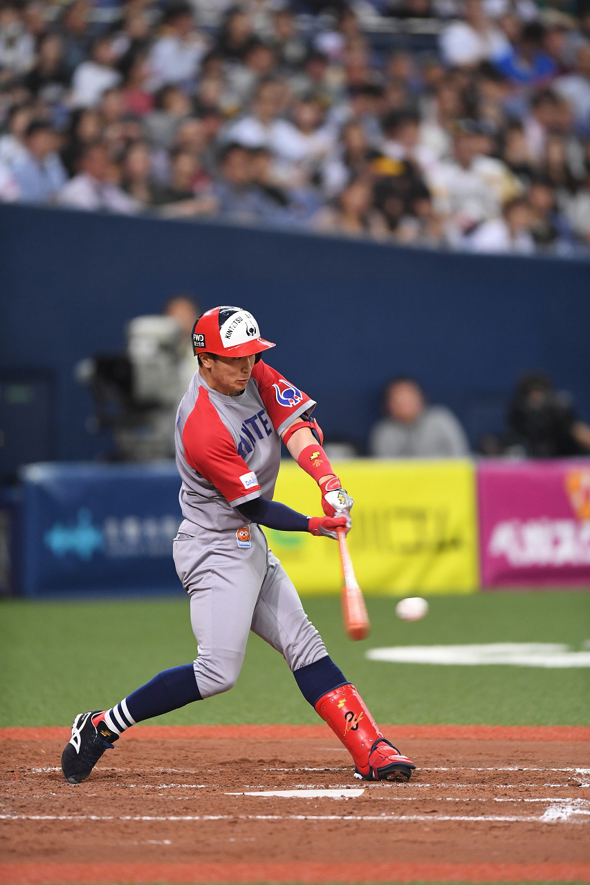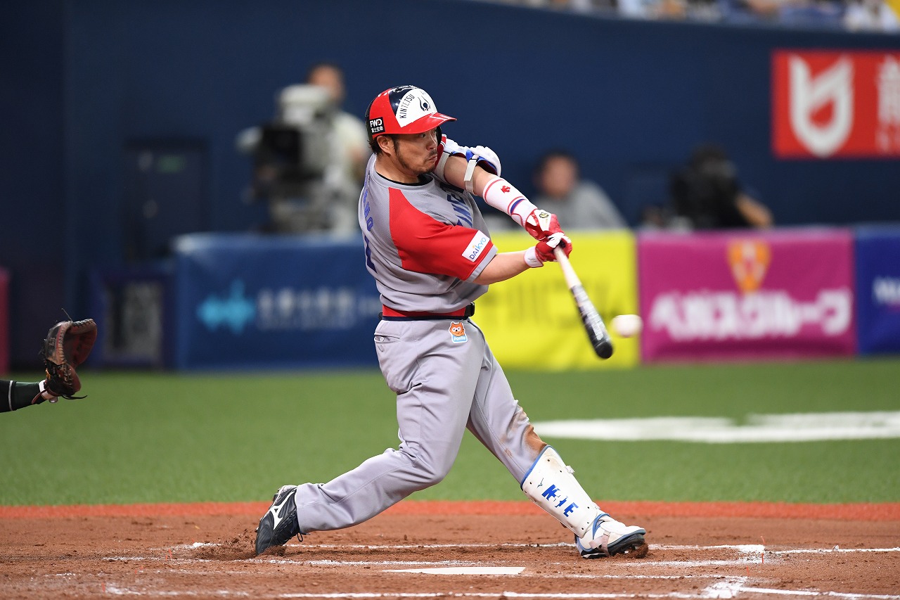 この回のトップバッターとしてレフト前ヒットを放った小谷野選手!