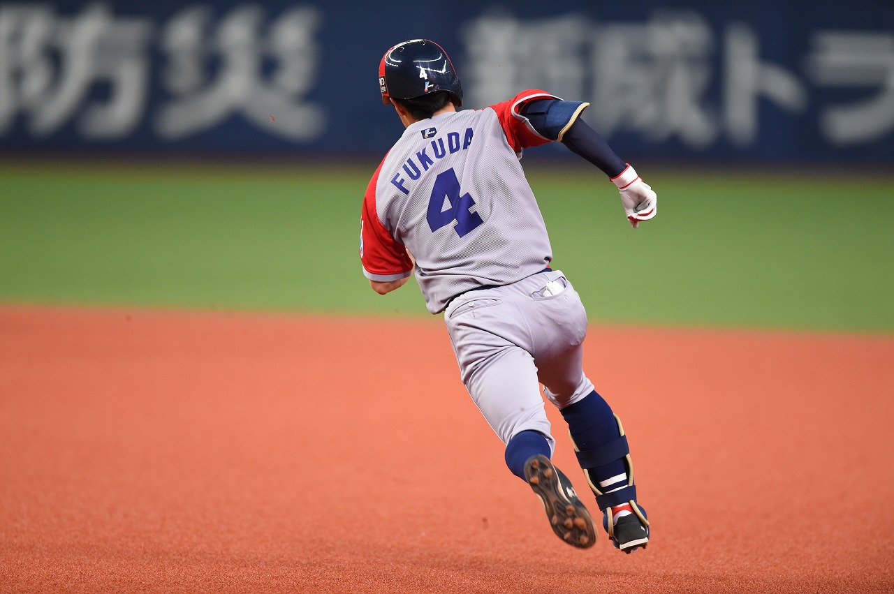 追加点の足がかりとなるレフト2ベースヒットを放った福田選手!