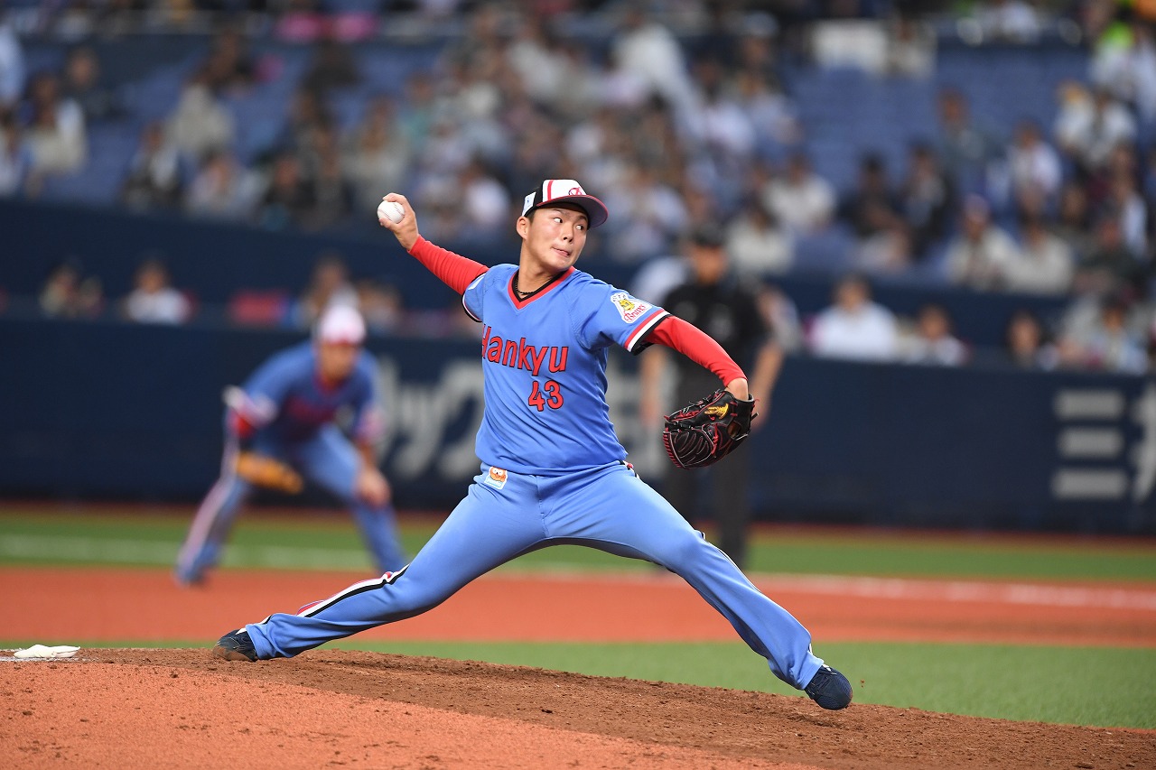 投手 吉田一 9番 金子侑 左飛 外角のストレートを打つもレフトフライ 1アウト |