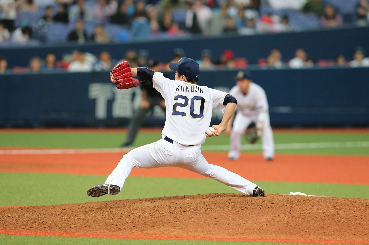 投手 近藤 6番 石井一 空三振 外角高めのストレートを空振り三振 1アウト |