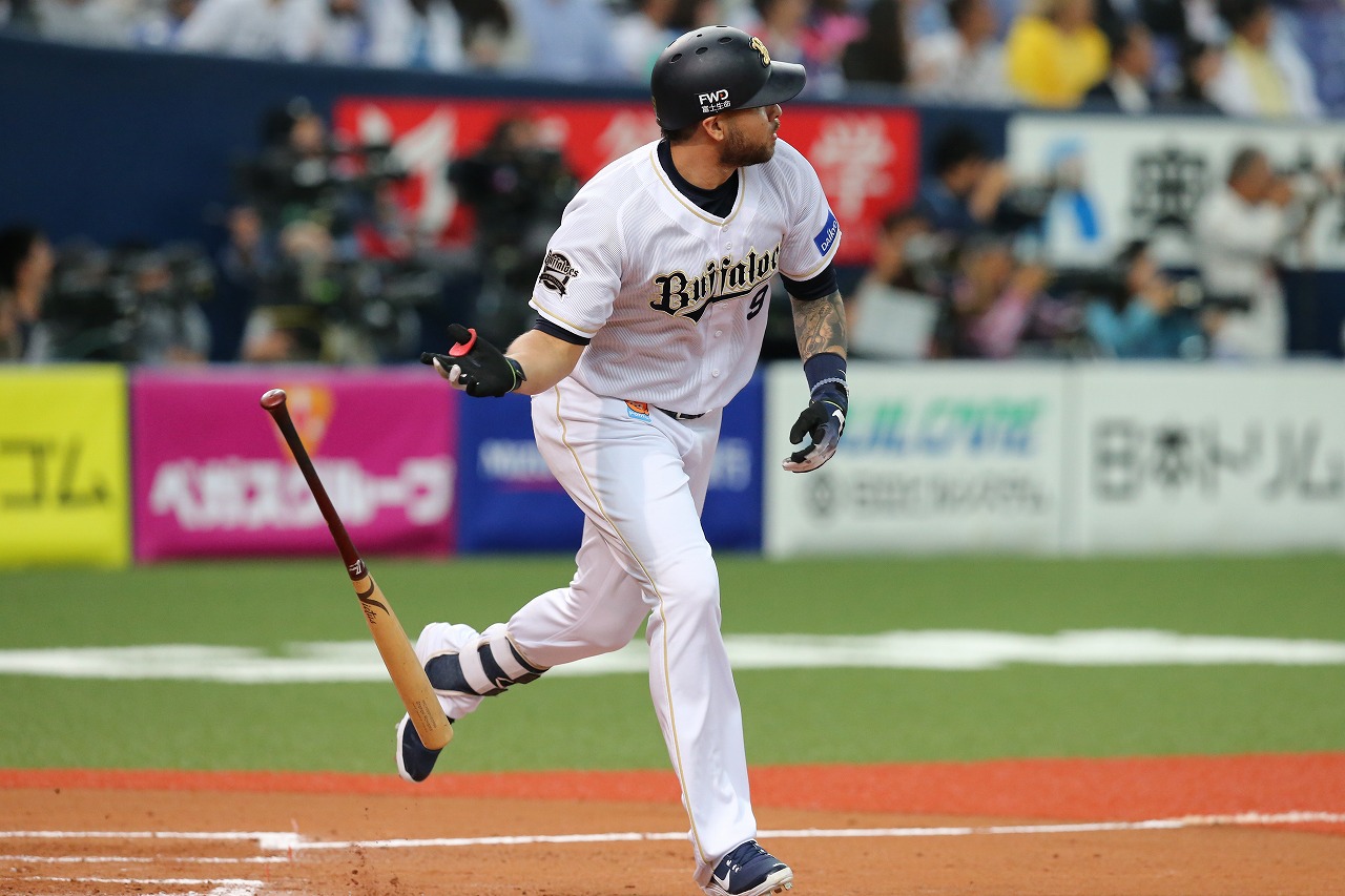 鶴岡(捕)の悪送球により生還する オ2-1日 ![]() 2