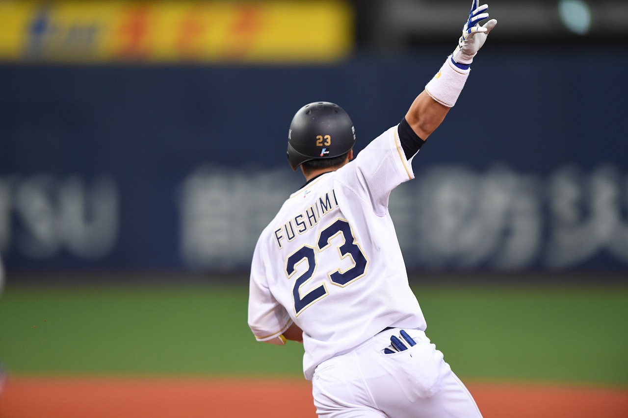 3番 伏見 左2 ランナー2塁 内角のストレートをレフトへサヨナラタイムリーツーベース! オ3-2巨 ![]() 3
