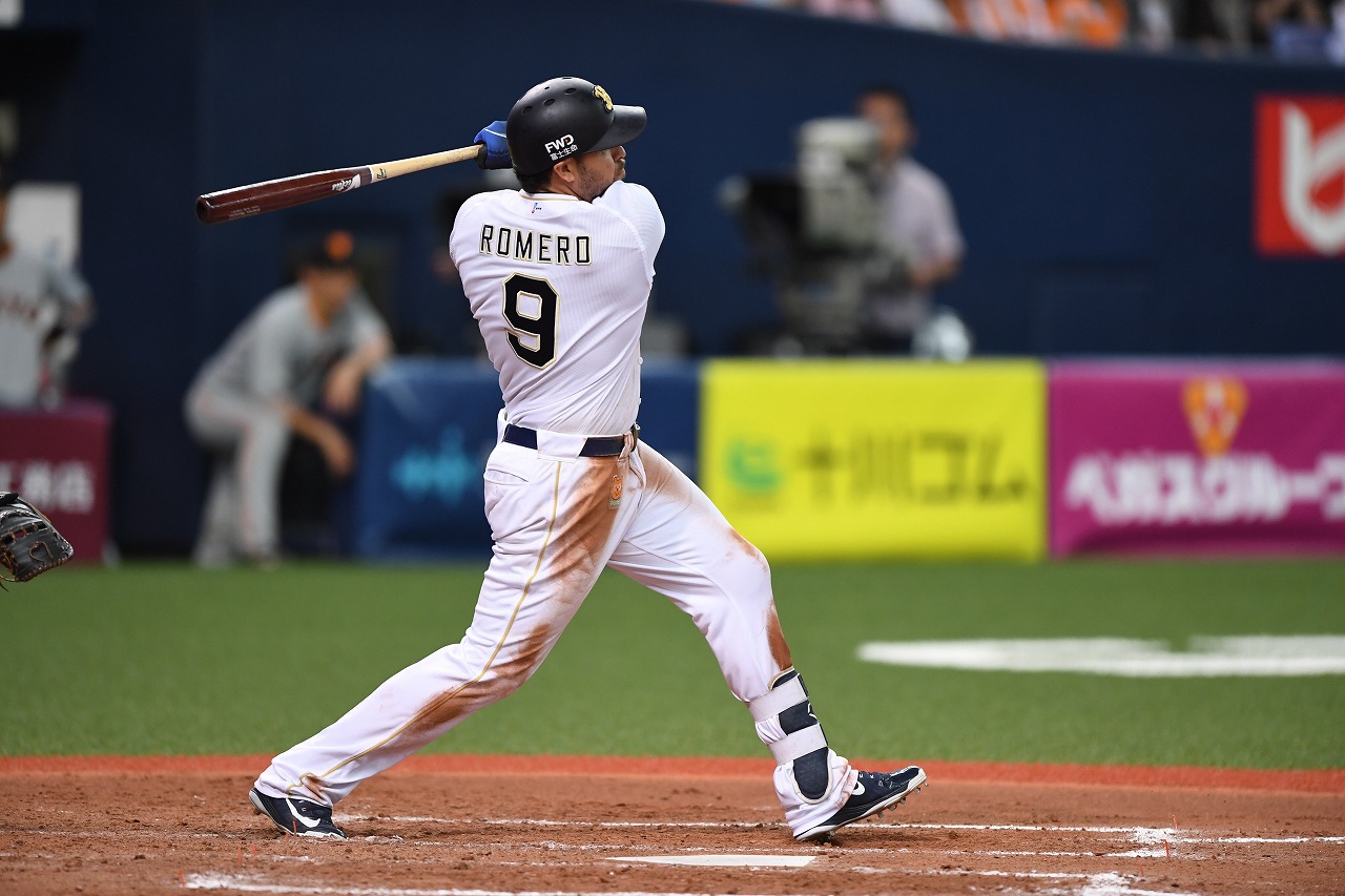 2死2塁のチャンスでセンター前タイムリーヒットを放ったロメロ選手!