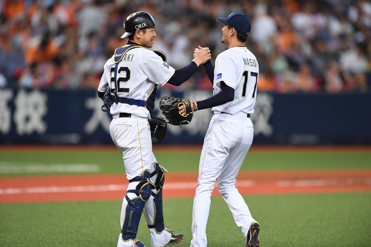 この回を無失点に抑えた吉田一投手と若月選手のバッテリー!