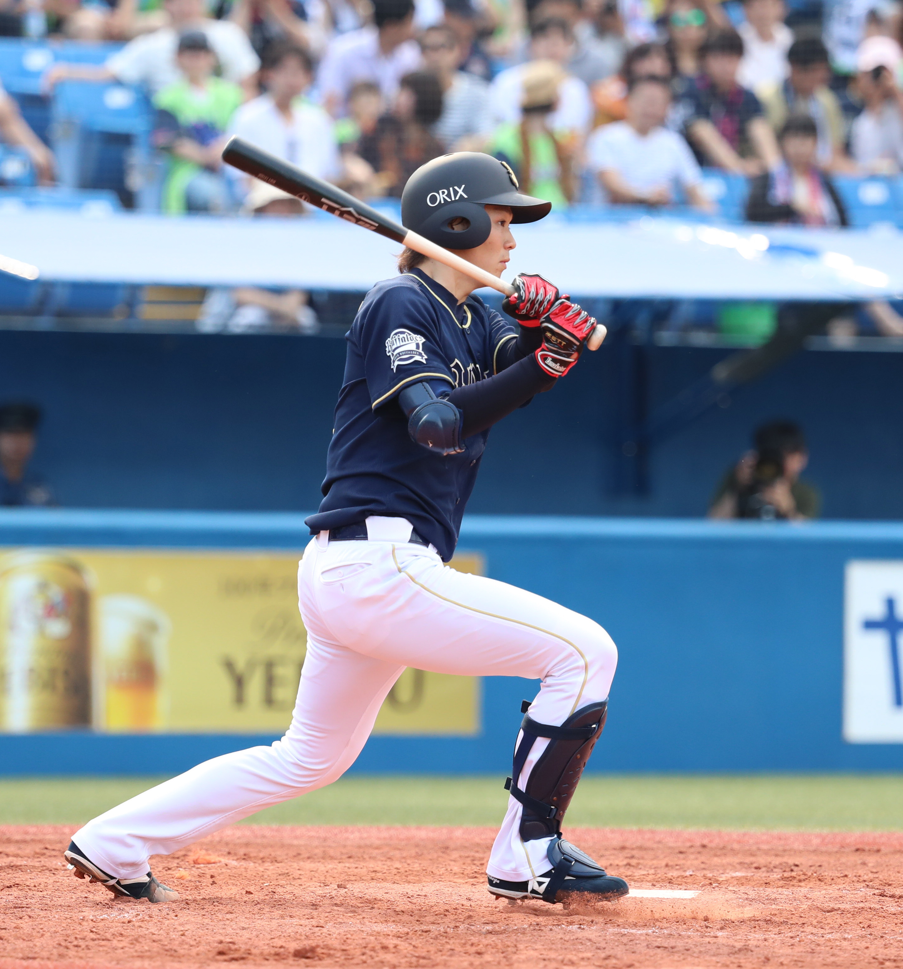 3番 川端 中安 ど真ん中のストレートをセンターへ打ってヒット 1塁  |
