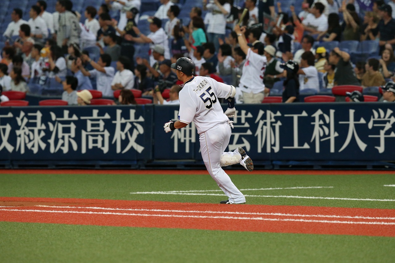 今日2本目の3ランホームランを放ったT-岡田選手!