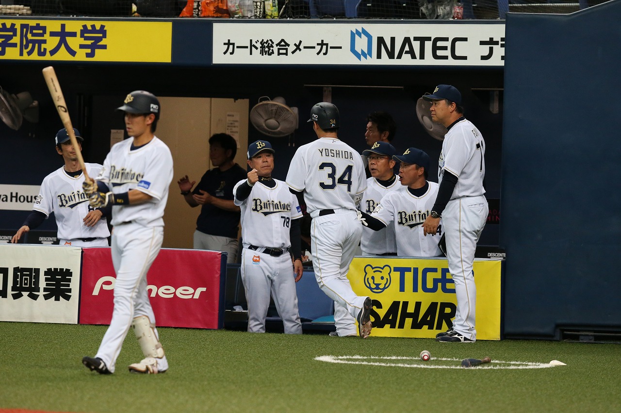 投手 近藤 投手 吉田一 守備変更:吉田正→レフト 守備変更:武田→センター 守備変更:T-岡田→ファースト 守備変更:小田→ライト 守備変更:吉田一→ピッチャー  |