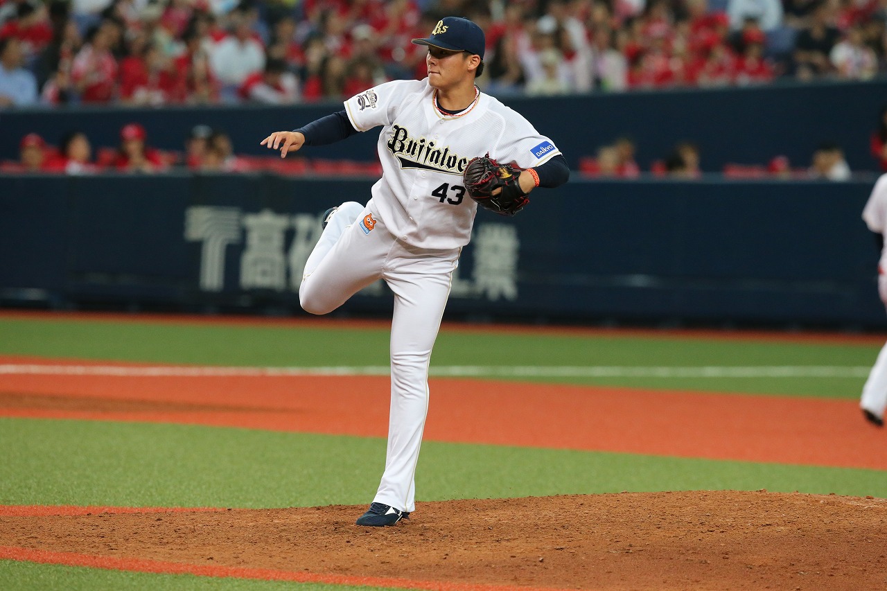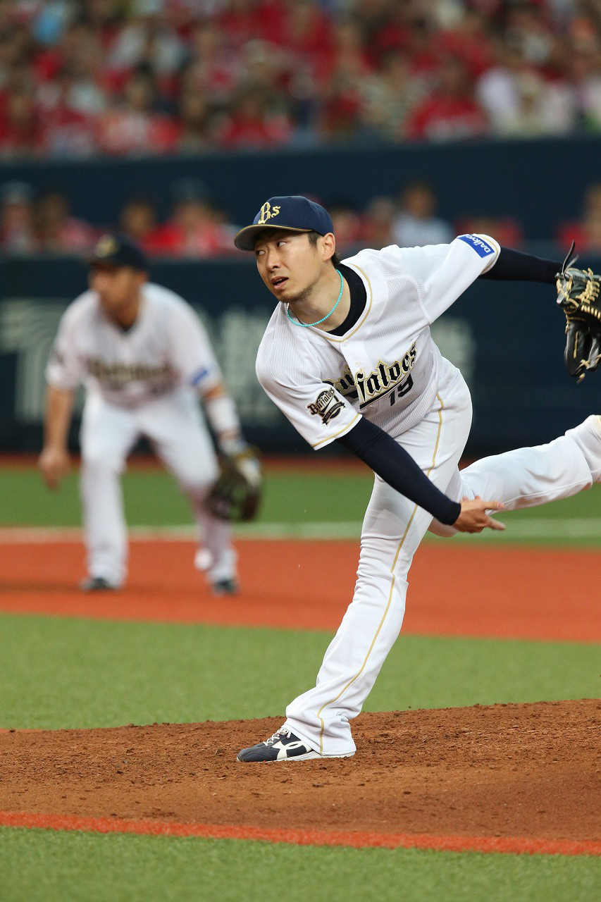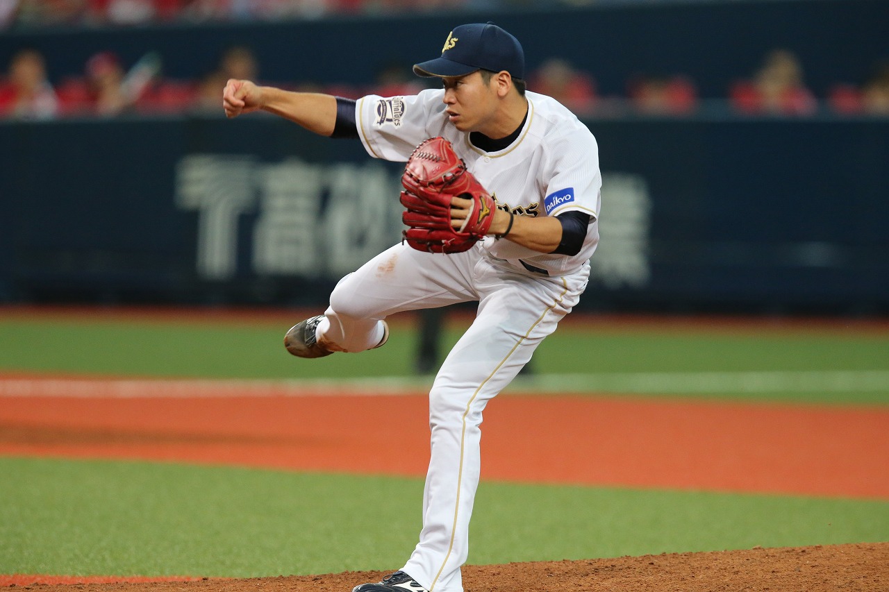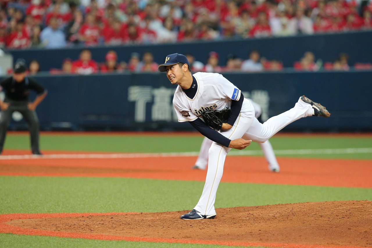 初回を3者凡退に抑えるスタートを切った金子千尋投手!