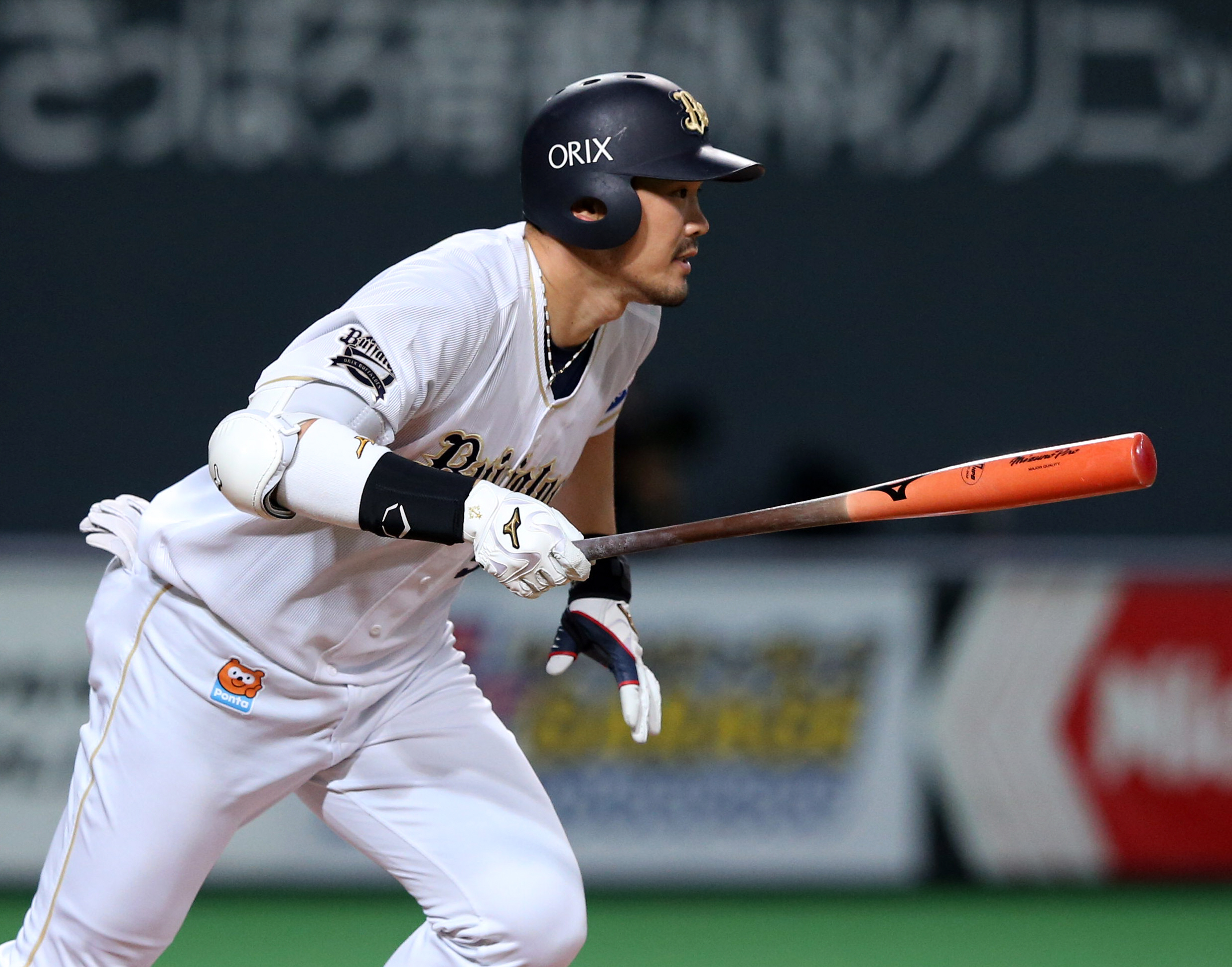 チャンスを作るライトヒットを放ったT-岡田選手!