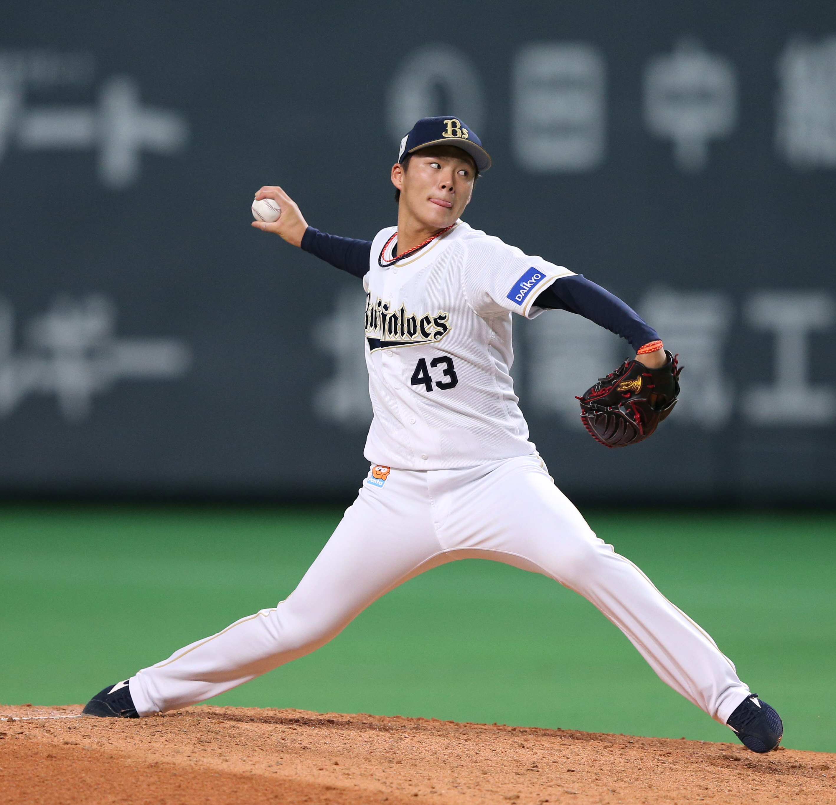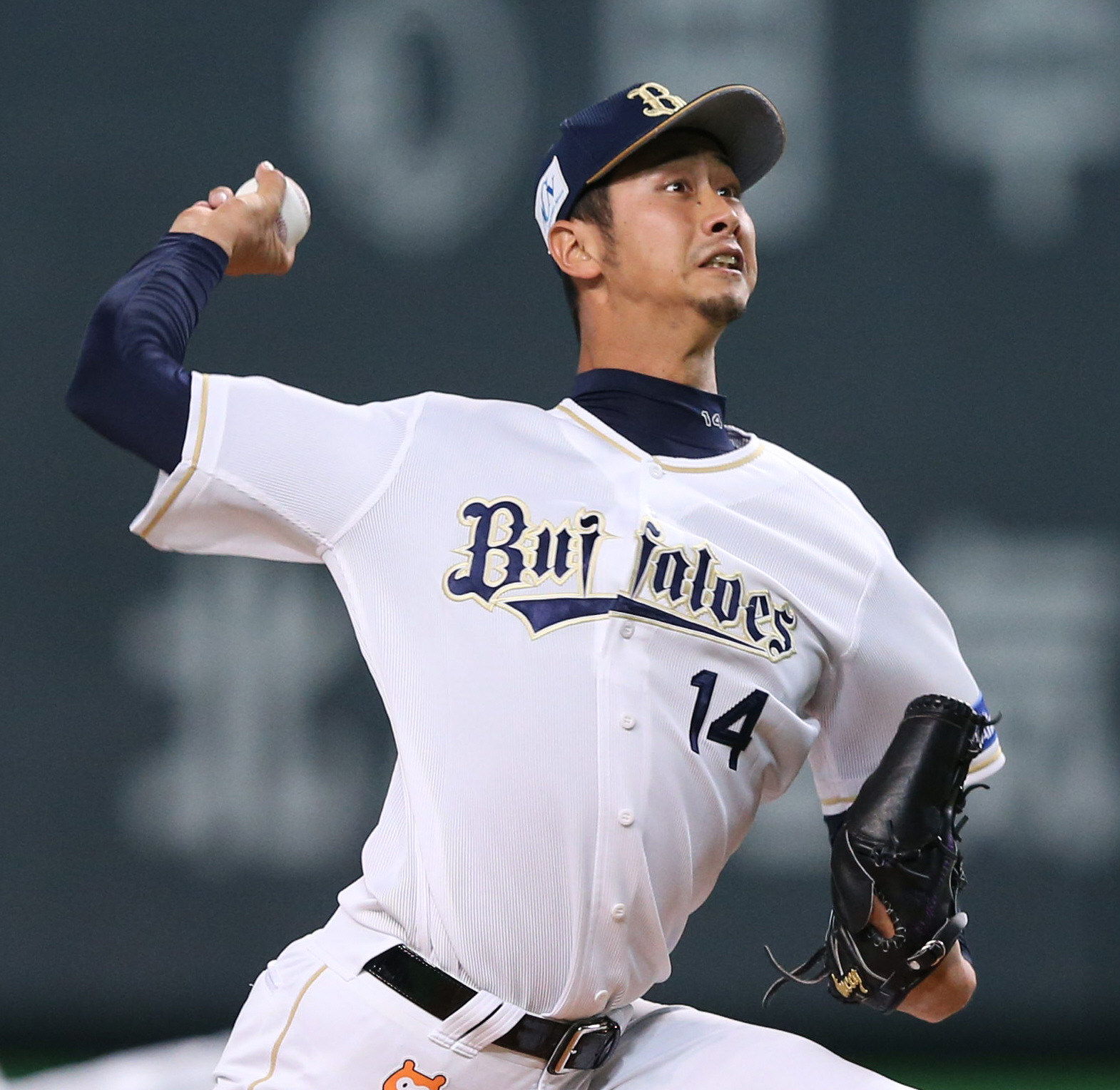 投手 西 9番 石井一 中飛 外角低めのチェンジアップを打つもセンターフライ 1アウト  |
