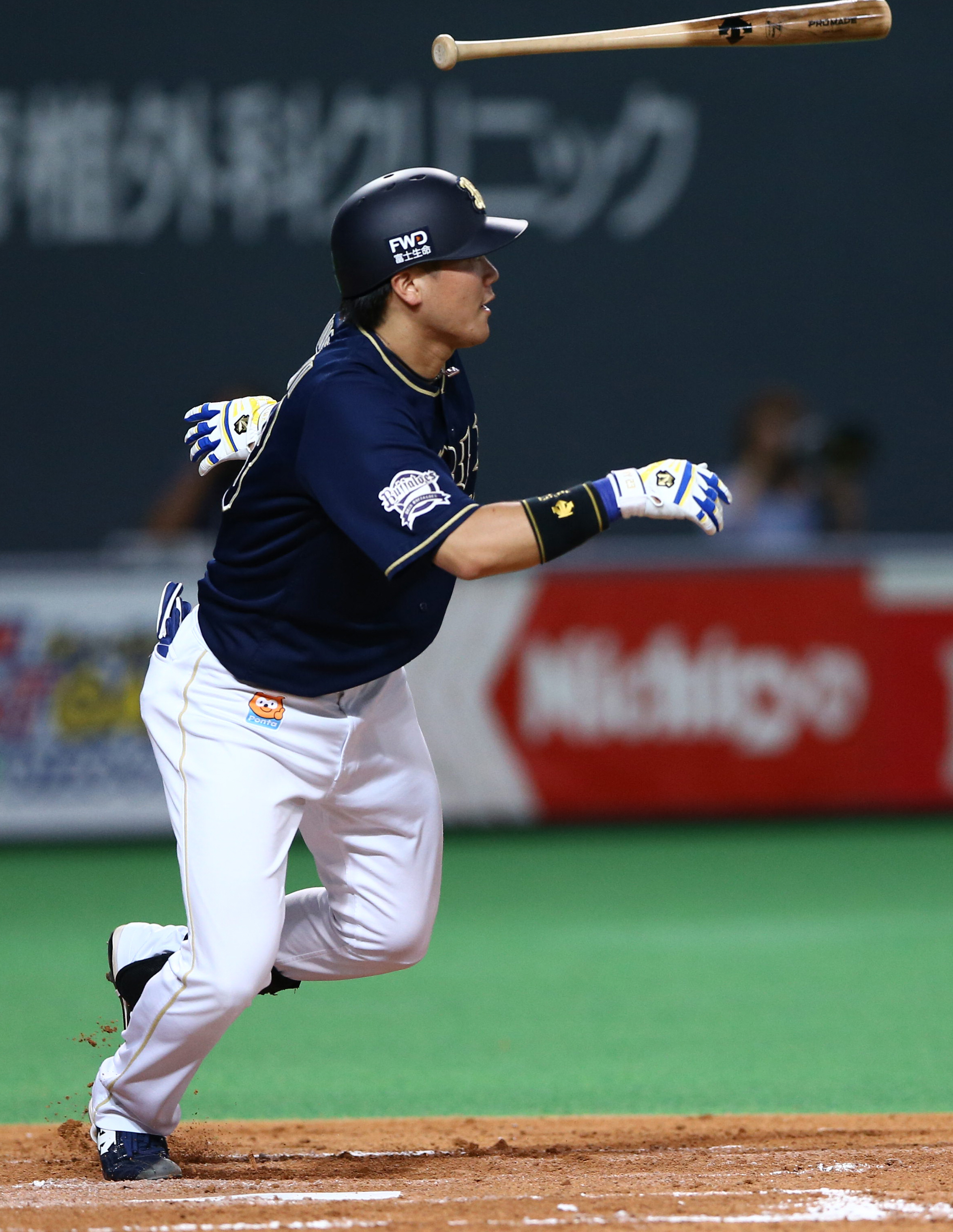 5番 レアード 中安 ランナー2塁 低めのツーシームをセンターへ先制タイムリーヒット 1塁 日1-0オ ![]() 1