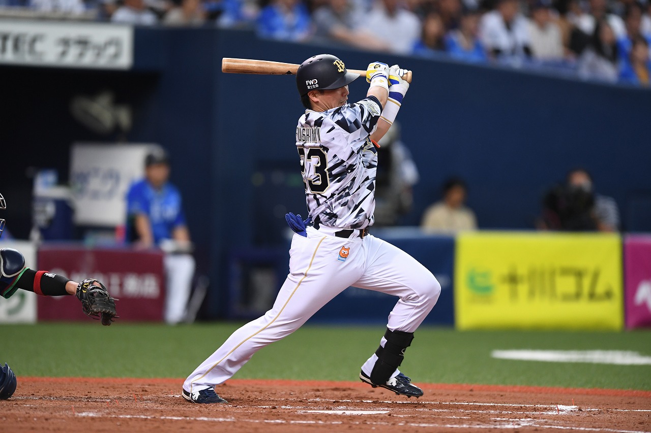 4番 吉田正 中安 外角のフォークをセンターへ打ってヒット 1塁 |