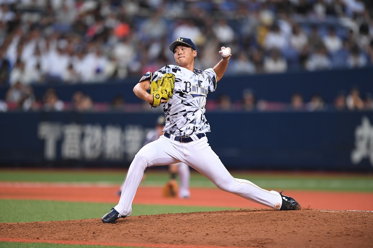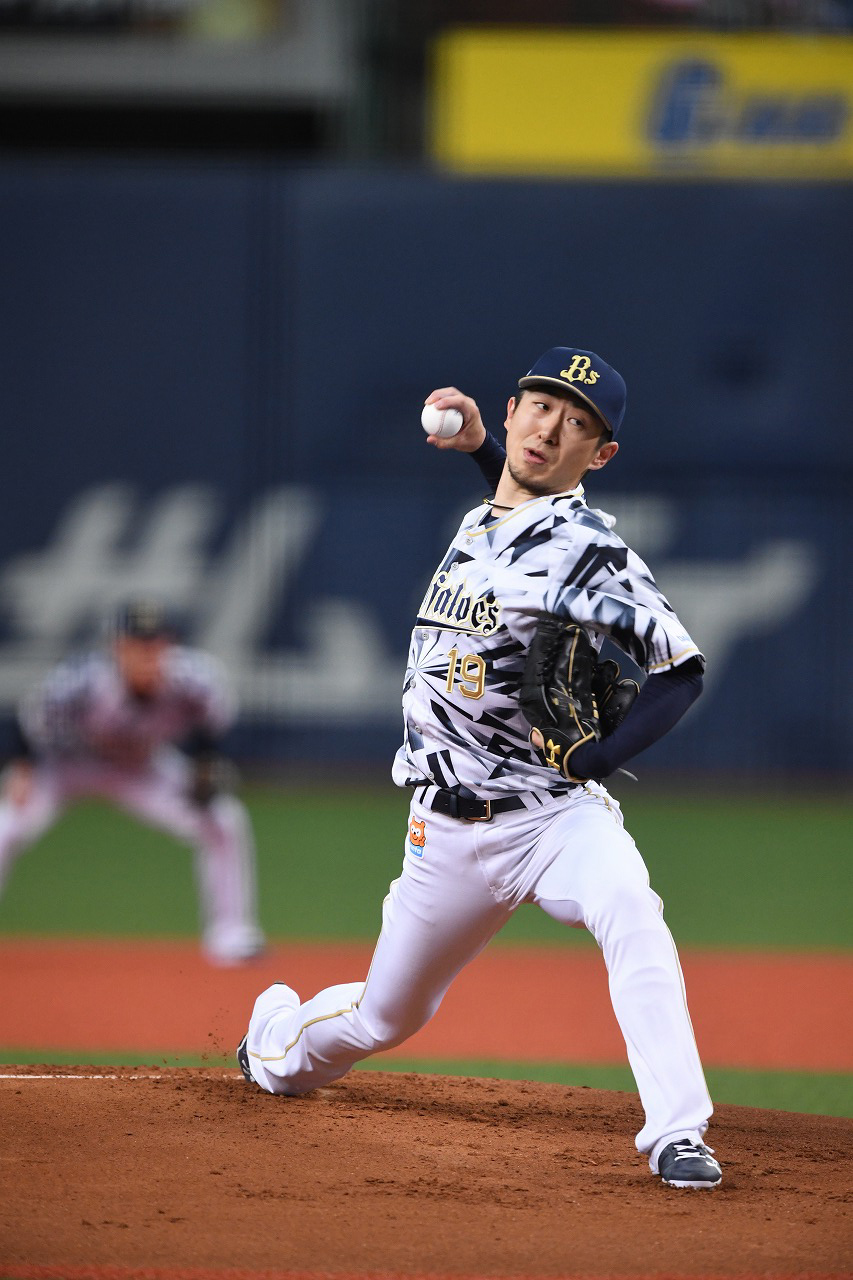 今日初めて3者凡退に抑えた金子千尋投手!