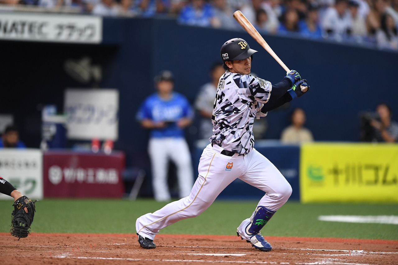 1番 宮崎 中安 ランナー2,3塁 外角低めのフォークをセンターへ同点タイムリーヒット! 1塁 オ4-4西 ![]() 4