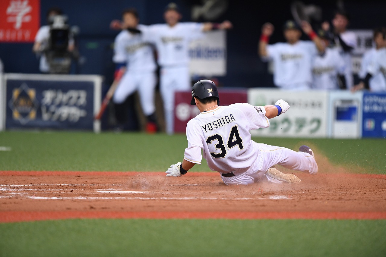 4番 吉田正 右安 内角高めのカーブをライトへ打ってヒット 1塁 |