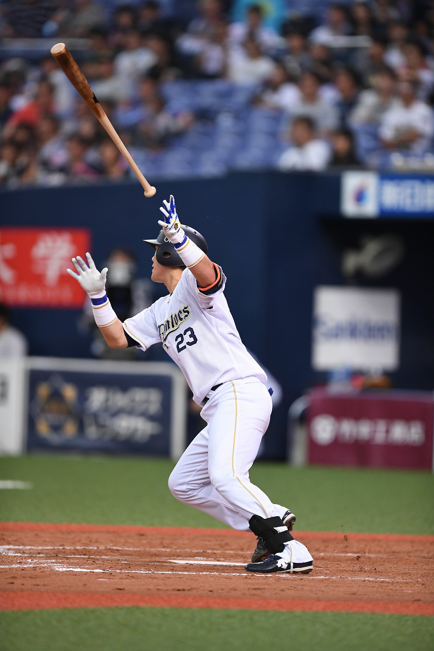 5番 松田宣 中2 ランナー2塁 ど真ん中のフォークをセンターへ勝ち越しタイムリーツーベース 2塁 オ1-2ソ ![]() 1