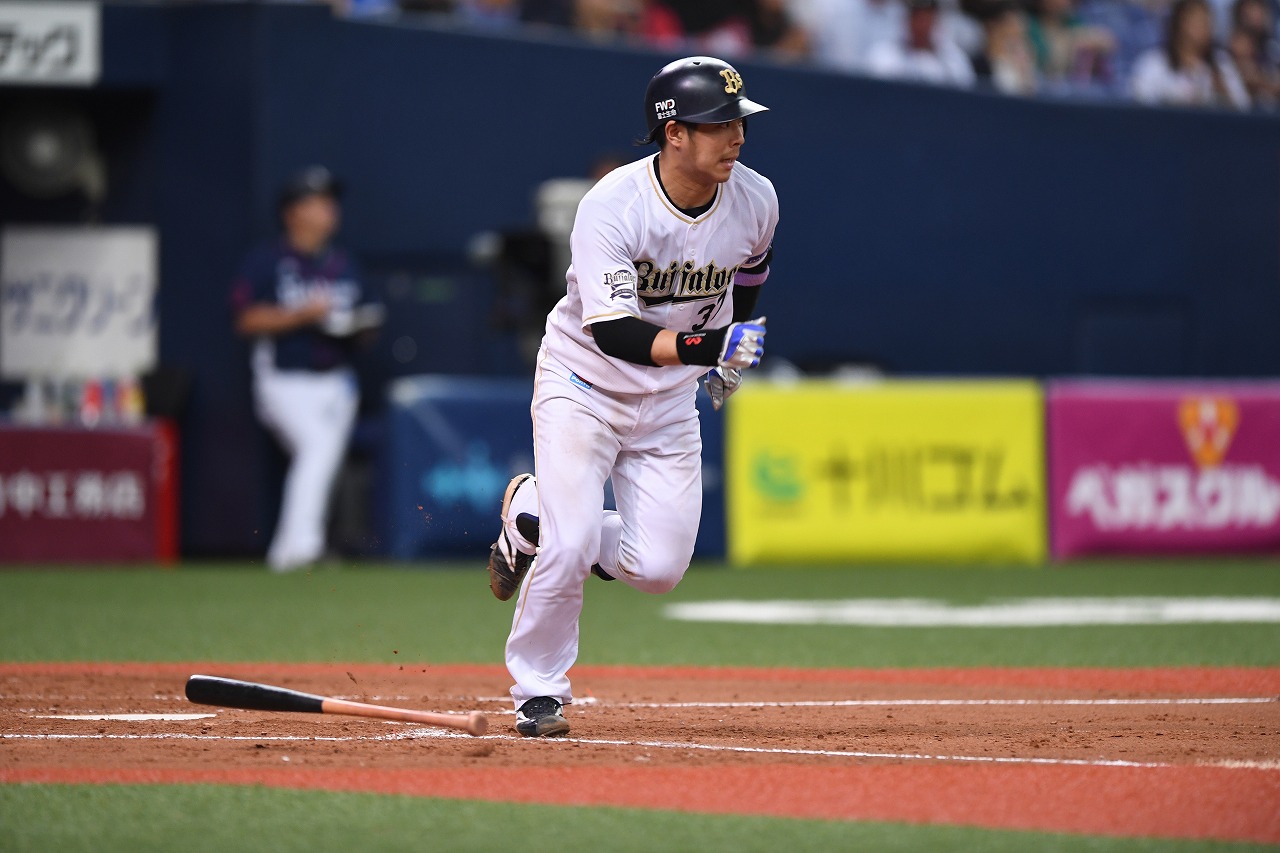 6番 外崎 遊安 外角のスライダーをショートへ打ってヒット 1塁 |