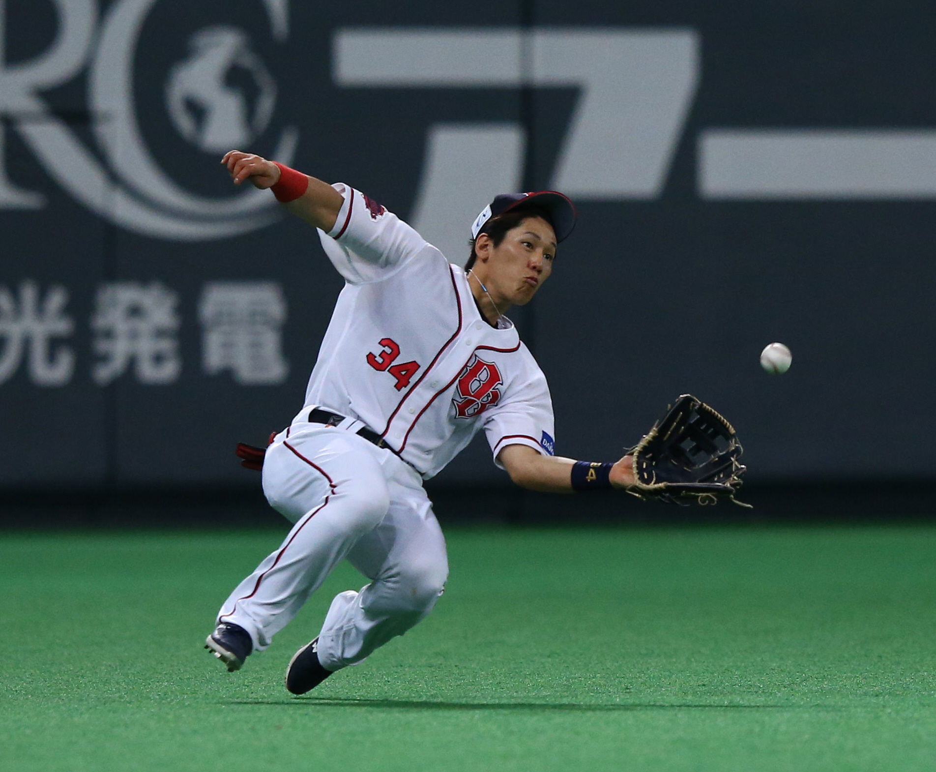 3番 近藤 左安 ランナー1,2塁 内角のカーブをレフトへタイムリーヒット 1,2塁 日3-7オ ![]() 3
