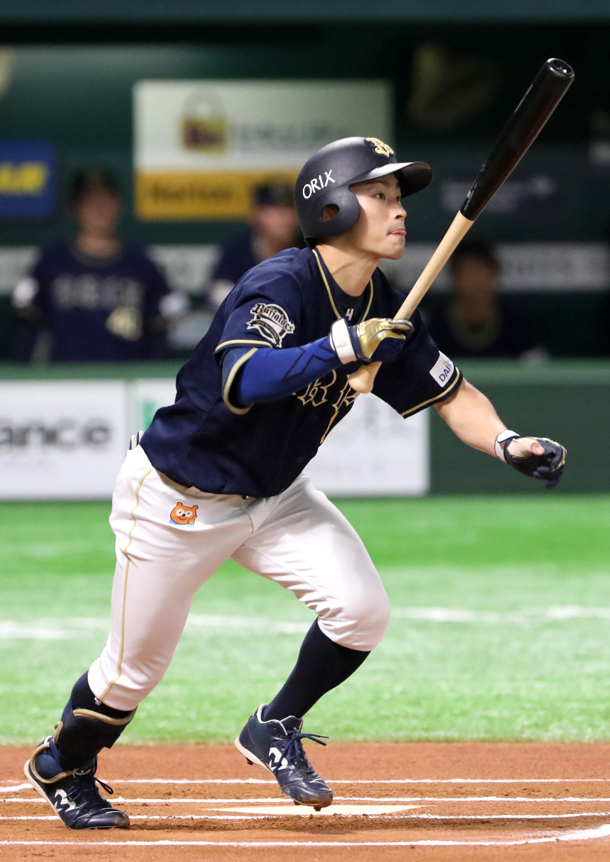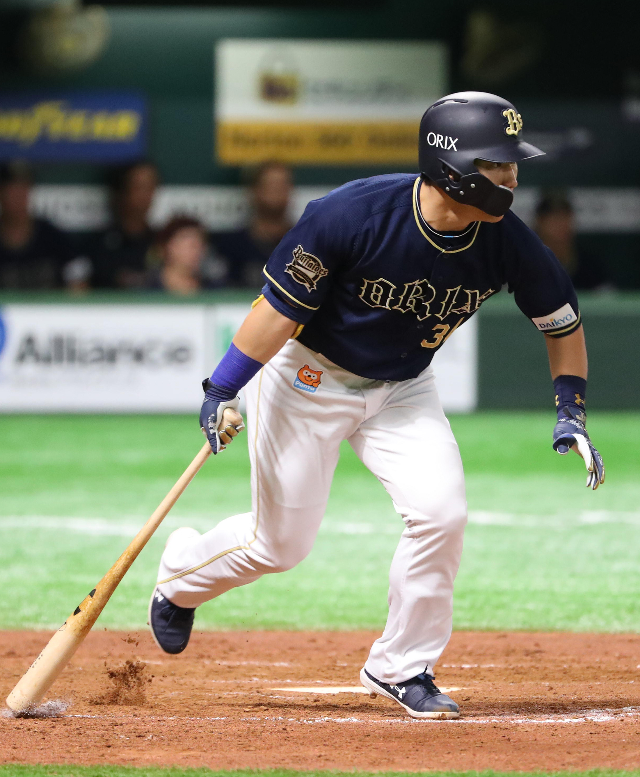 センターへヒットを放った吉田正選手!