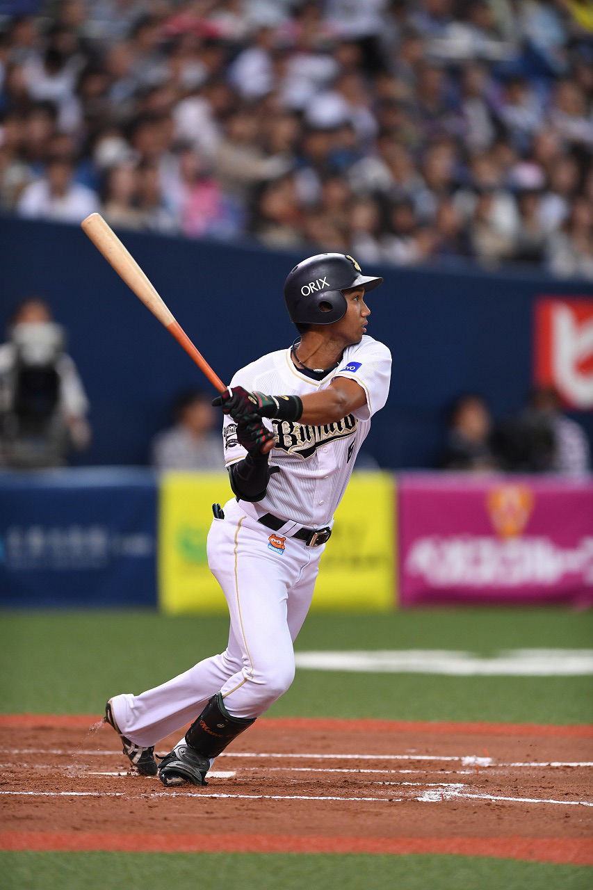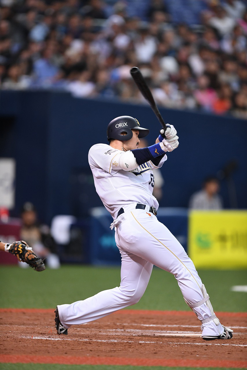 代打で右中間スタンドにソロホームランを放ったT-岡田選手!