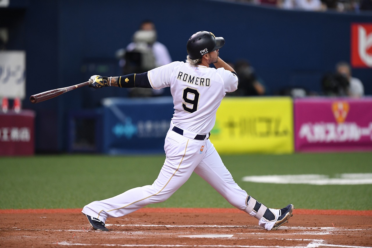 左中間スタンドに先制のソロホームランを放ったロメロ選手!
