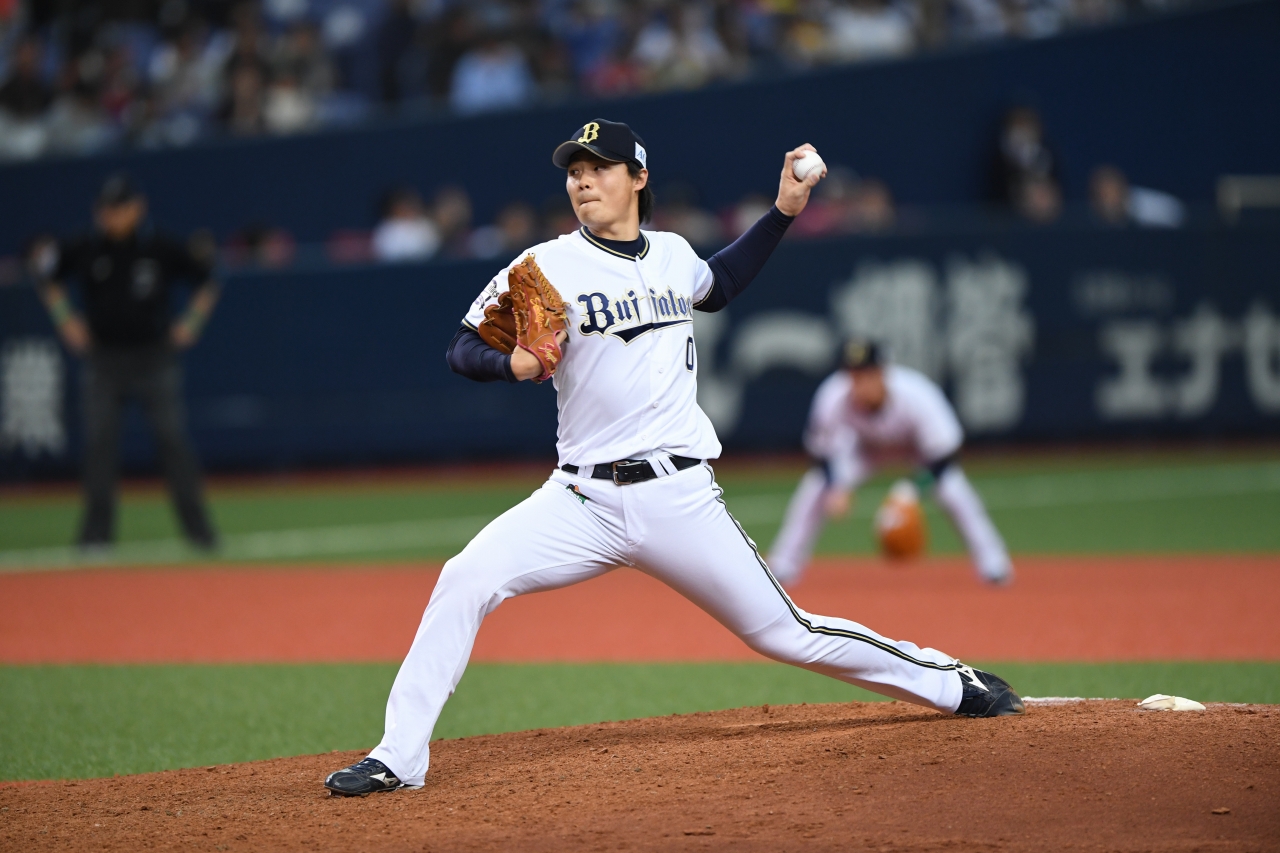 投手 東浜 4番 吉田正 空三振 外角低めのシンカーを空振り三振 1アウト |