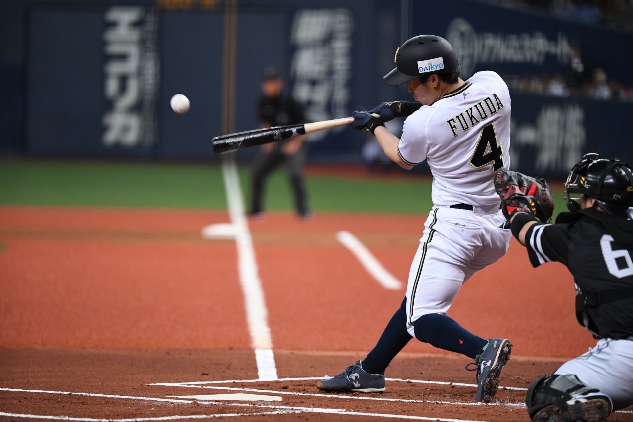 1番 福田 中安 内角のストレートをセンターへ打ってヒット 1塁  |