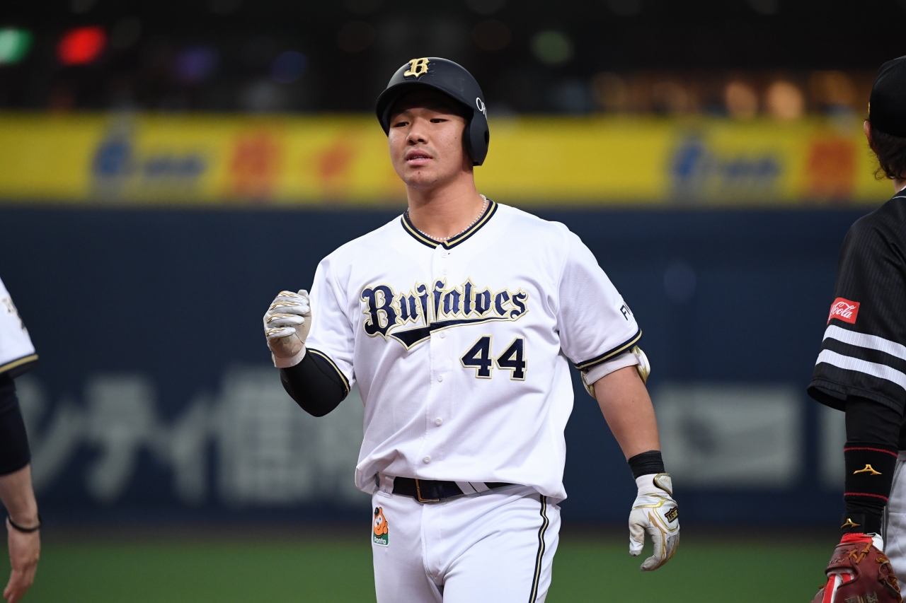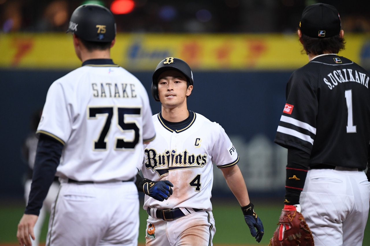 4番 吉田正 四球 フォアボールを選ぶ 1塁  |