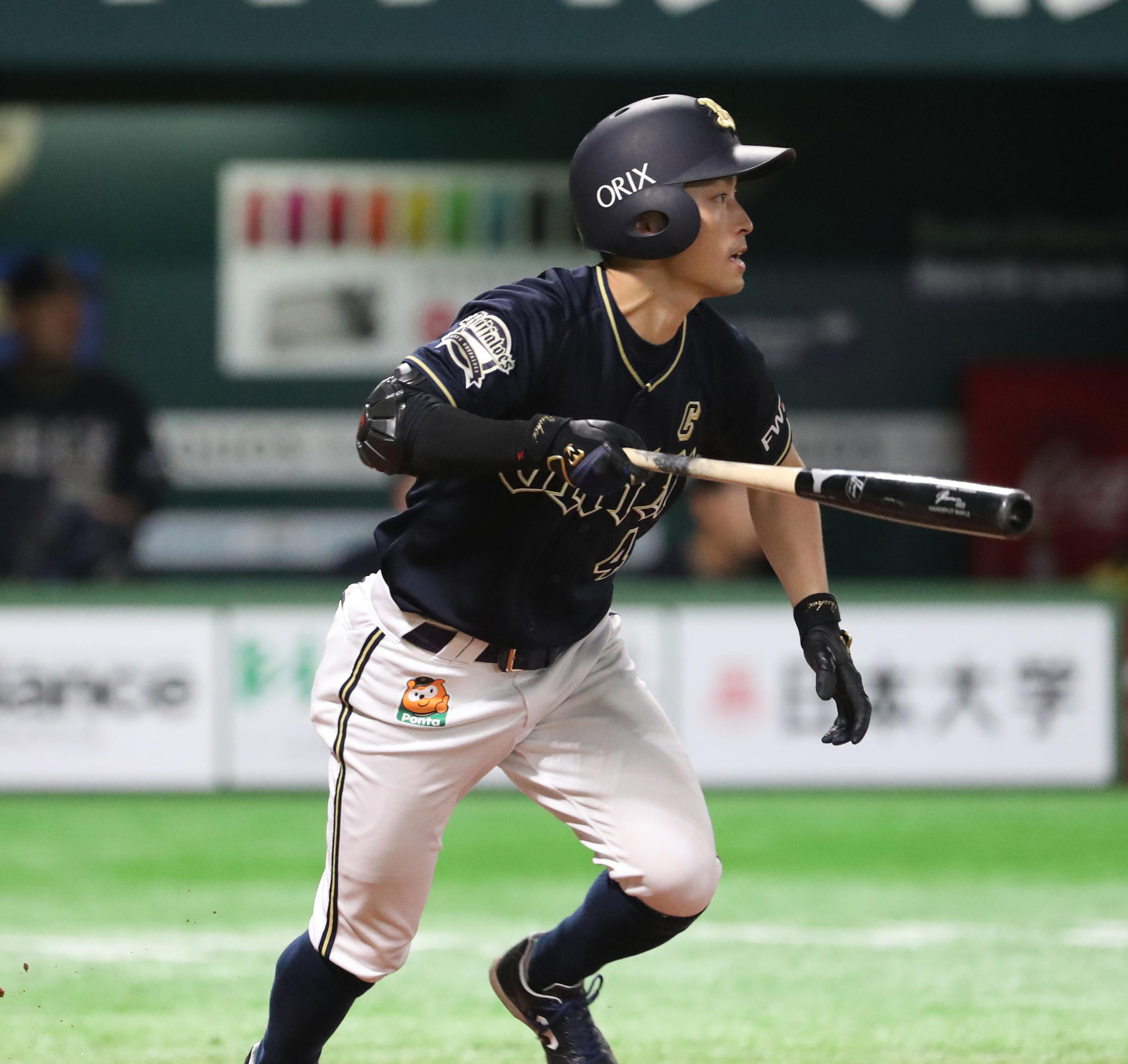 この回の先頭打者としてセンターへヒットを放った福田選手!