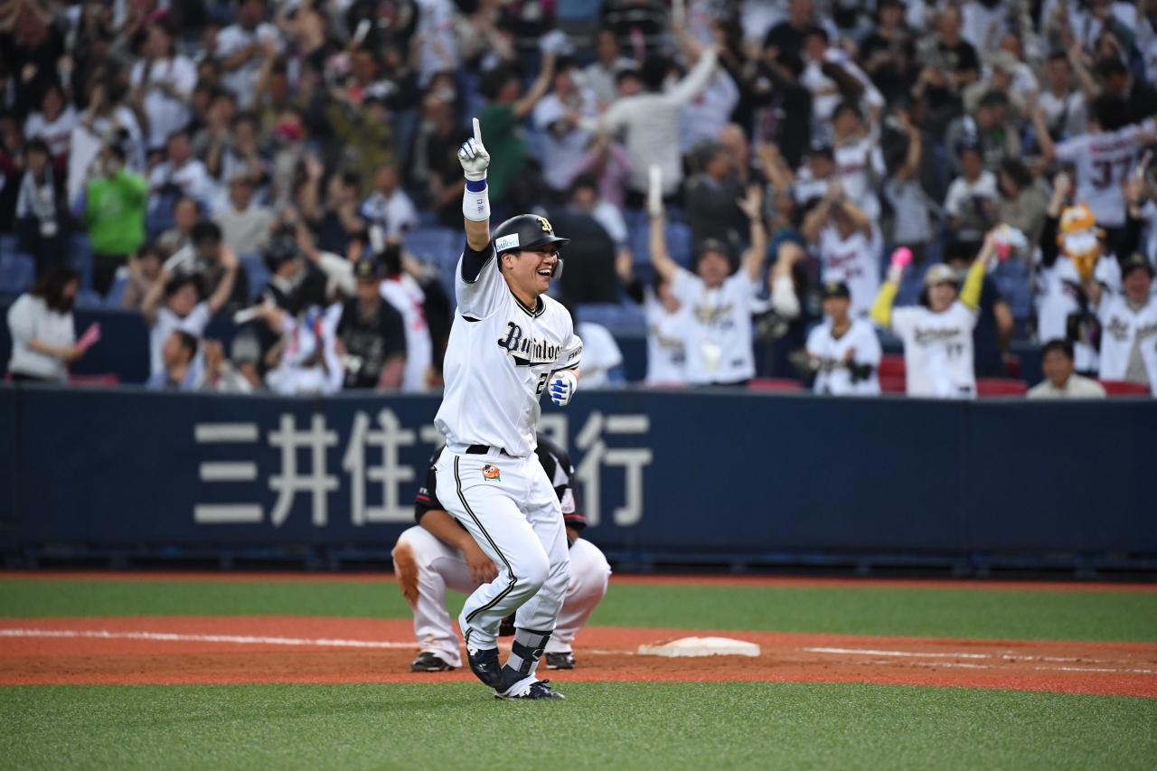 8番 伏見 左安 ランナー2塁 内角低めのフォークをレフトへサヨナラタイムリーヒット! オ2-1ロ ![]() 2